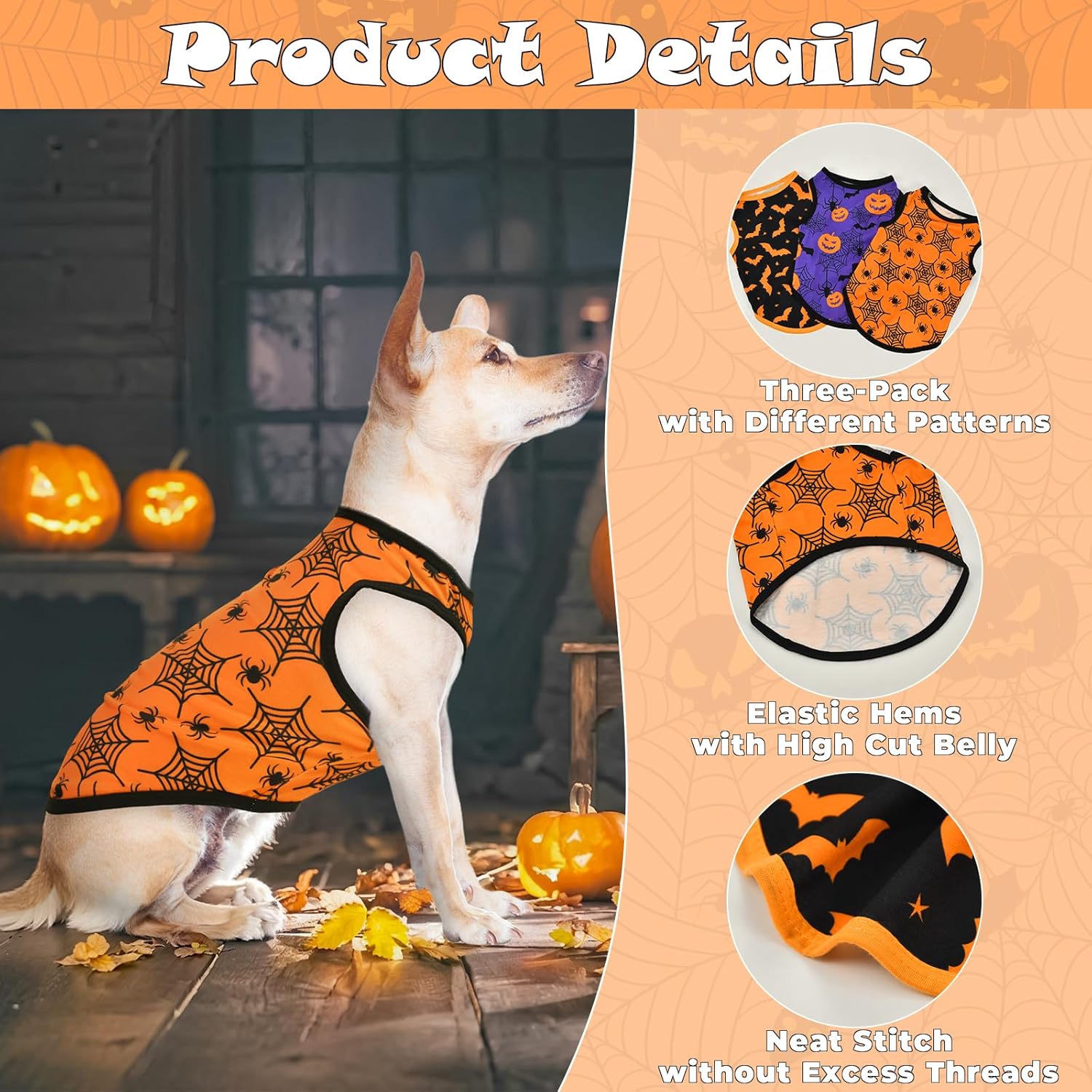 This 3-pack of Halloween dog shirts is perfect for small to medium-sized dogs, featuring spooky patterns of bats, spiders, and pumpkins in classic Halloween colors. Made from breathable, stretchy cotton fabric, these tank tops ensure your pet stays comfortable while looking festive. Whether it’s for a Halloween party, a walk in the park, or a fun photoshoot, these costumes are designed to make your pet stand out.