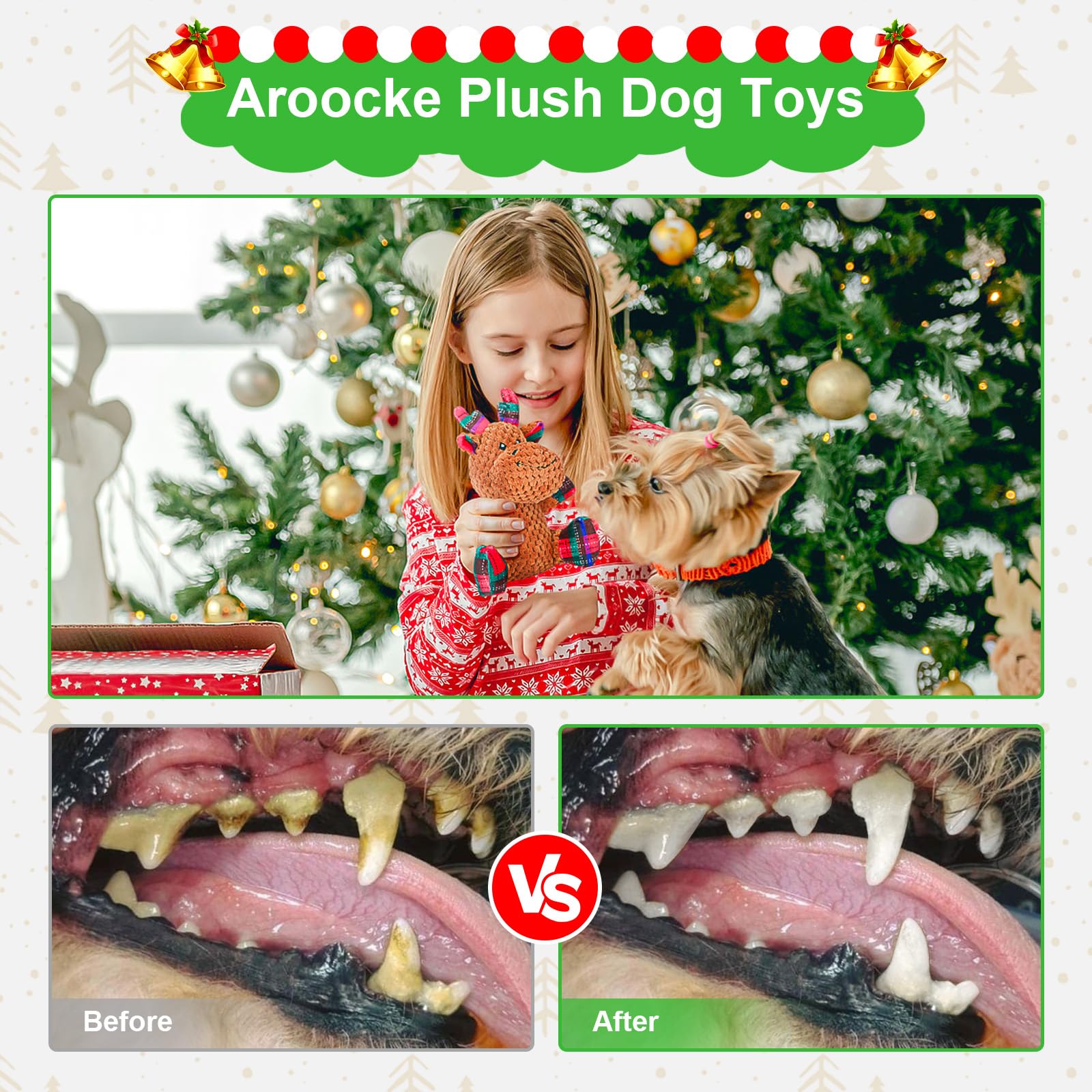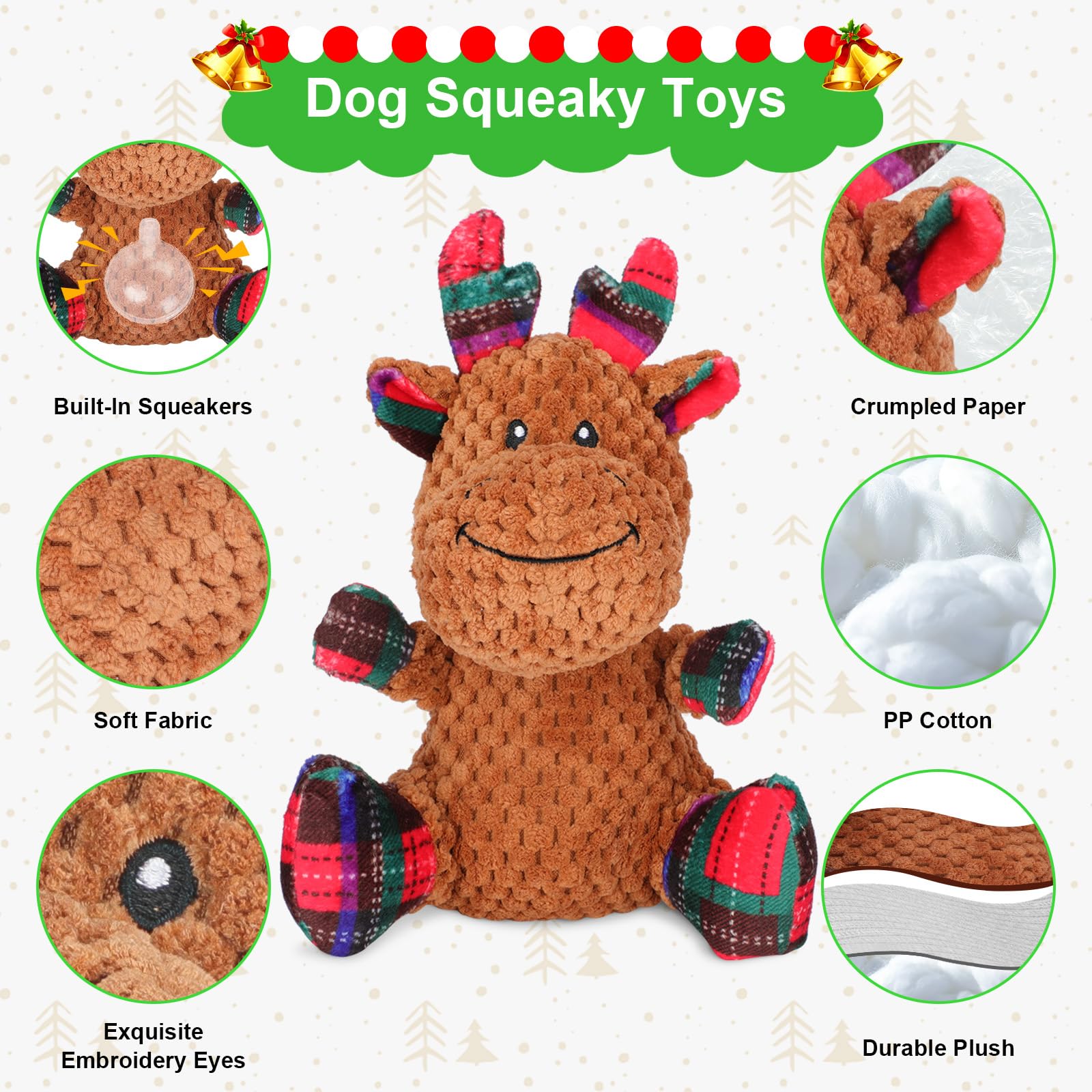 Made from soft cotton and double-layer velvet fabric, these Christmas dog toys are gentle on your dog’s teeth and gums while providing durability for everyday play.