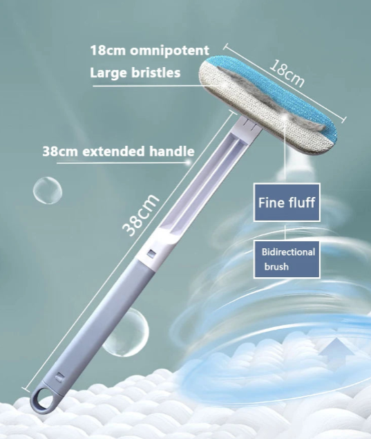 This tool makes cleanup simple. The extendable handle lets you reach floors, carpets, and furniture without kneeling or straining. What makes this cat hair remover tool special is its reusable velvet cloth head, which grabs fur efficiently with every pass. It's a simple, effective solution for a tidy home.
