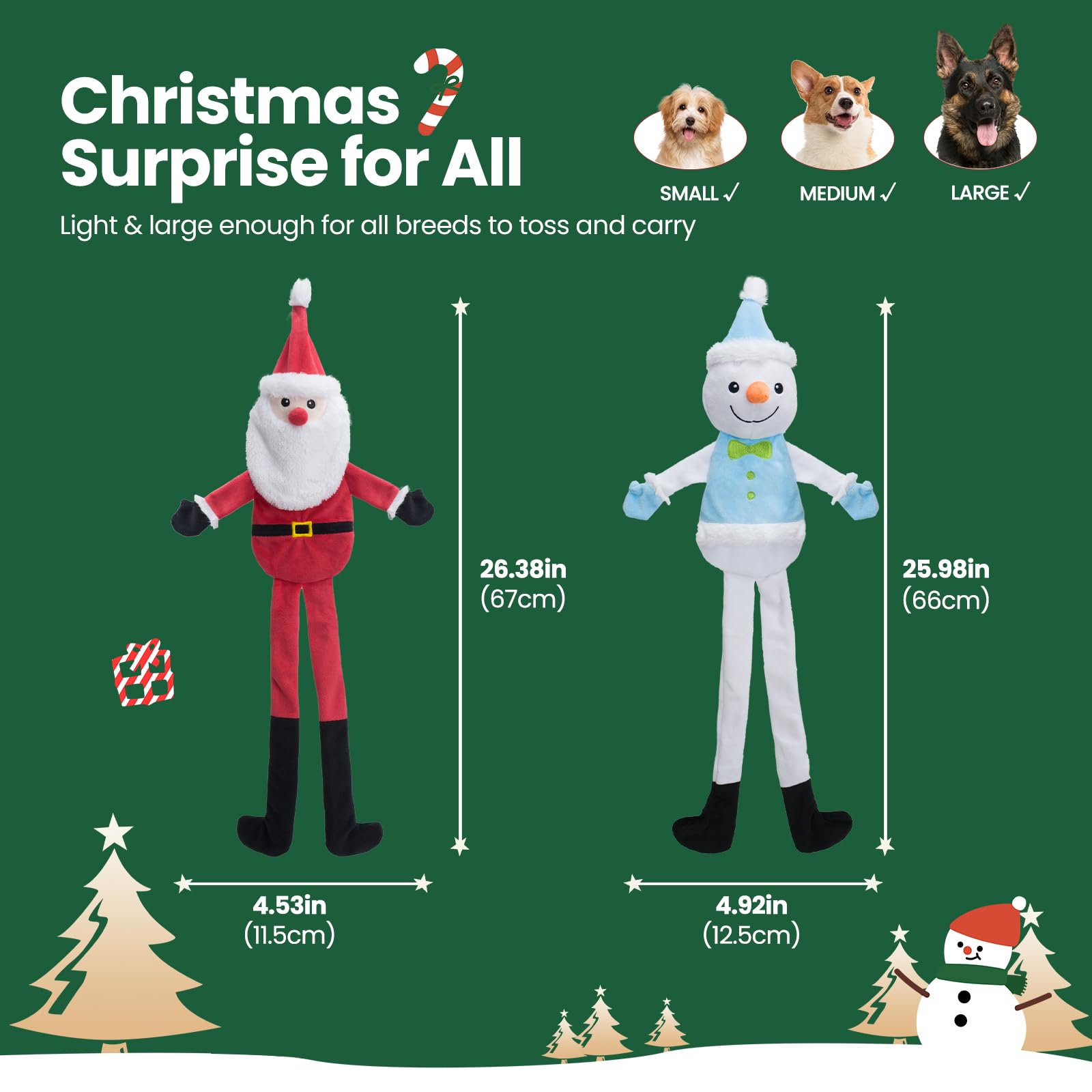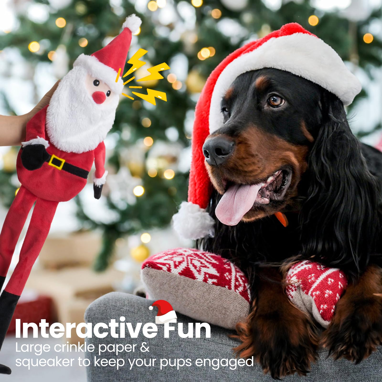 Celebrate the holidays with this festive 2-pack squeaky crinkle dog toy set, a safe, fun, and interactive gift to keep your dog busy, happy, and active all season long.